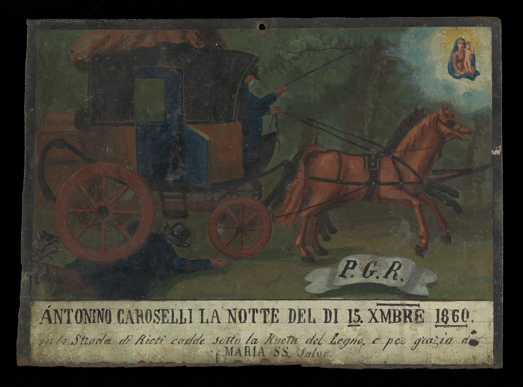 Credit: Antonino Caroselli run over by a coach. Oil painting by an Italian painter, 1860. Source: Wellcome Collection.