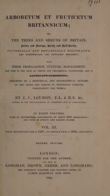 Arboretum et fruticetum Britannicum; or, the trees and shrubs of Britain, native and foreign, hardy and half-hardy, pictorially and botanically delineated, and scientifically and popularly described; with their propagation, culture, management, and uses in the arts, in useful and ornamental plantations, and in landscape gardening; preceded by a historical and geographical outline of the trees and shrubs of temperate climates. Throughout the world / By J.C. Loudon.