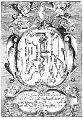 Credit: M0016887: Trade card of Gronier at the Sign of the Tare, surgical instrument maker, 1698. Source: Wellcome Collection.