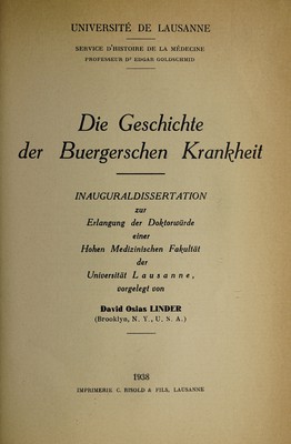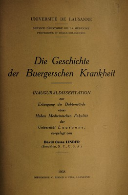 Die Geschichte der Buergerschen Krankheit / David Osias Linder.