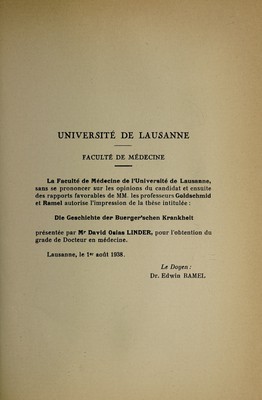 Credit: Die Geschichte der Buergerschen Krankheit / David Osias Linder. Source: Wellcome Collection.