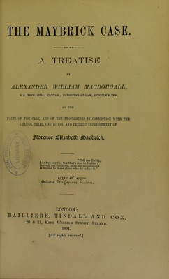 The Maybrick case : a treatise on the facts of the case, and of the proceedings in connection with the charge, trial, conviction, and present imprisonment of Florence Elizabeth Maybrick / by Alexander William MacDougall.