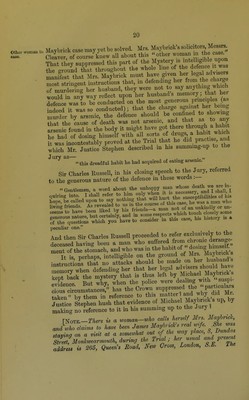 Credit: The Maybrick case : a treatise on the facts of the case, and of the proceedings in connection with the charge, trial, conviction, and present imprisonment of Florence Elizabeth Maybrick / by Alexander William MacDougall. Source: Wellcome Collection.