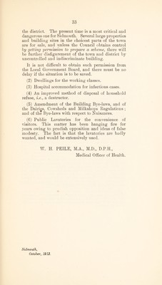 Credit: [Report 1912] / Medical Officer of Health, Sidmouth U.D.C. Source: Wellcome Collection.