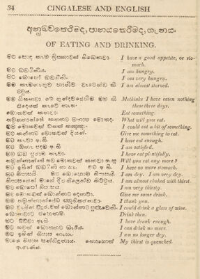 Credit: A vocabulary in Cingalese and English : with a series of familiar phrases / [John Callaway]. Source: Wellcome Collection.