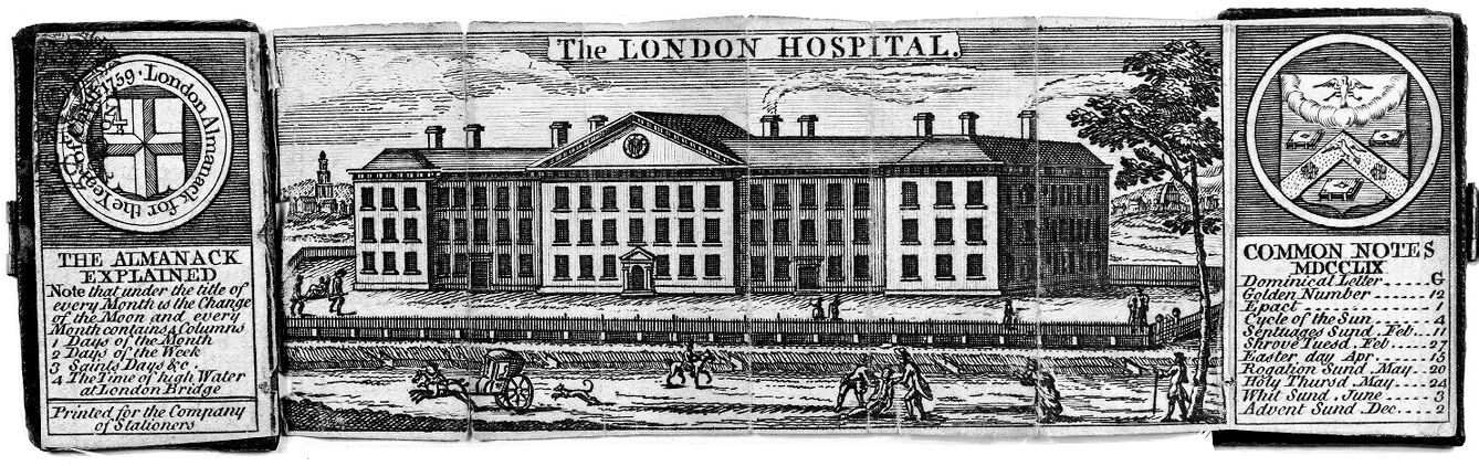 Credit: M0015813: Engraving of the London Hospital. Source: Wellcome Collection.