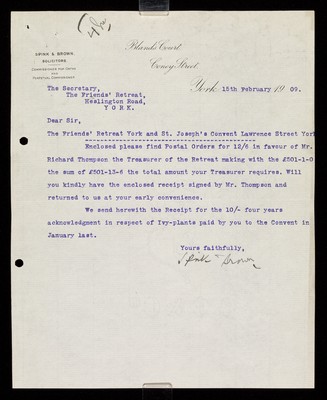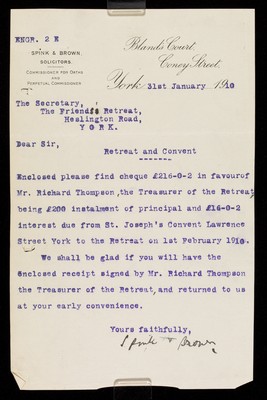 Credit: Papers relating to sale of part of Retreat land in Bleasdale’s Fields to the Sisters of the Order of Poor Clares, St Joseph’s Convent, Lawrence Street. Source: Wellcome Collection.