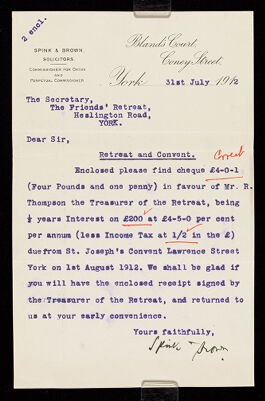 Papers relating to sale of part of Retreat land in Bleasdale’s Fields to the Sisters of the Order of Poor Clares, St Joseph’s Convent, Lawrence Street