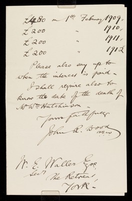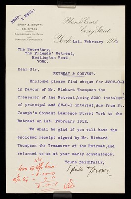 Credit: Papers relating to sale of part of Retreat land in Bleasdale’s Fields to the Sisters of the Order of Poor Clares, St Joseph’s Convent, Lawrence Street. Source: Wellcome Collection.