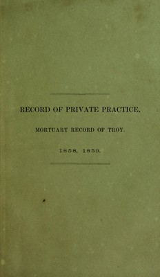 Record of private practice : for the years 1858 and 1859; and mortuary record of the city of Troy, N. Y. for the years 1858 and 1859.