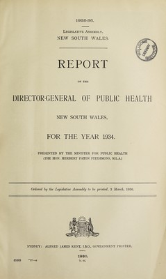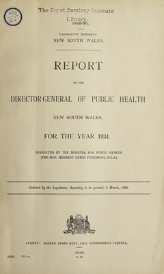 Report of the Director-General of Public Health, New South Wales.
