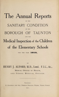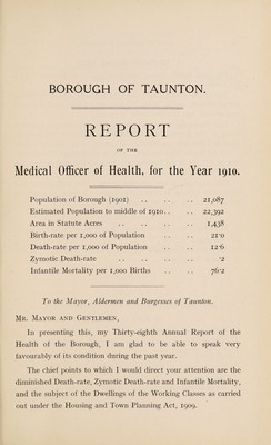 Credit: [Report 1910] / Medical Officer of Health, Taunton Borough. Source: Wellcome Collection.