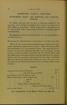 Catalogue of artificial teeth, precious metals, stoppings, dental rubbers, furniture, instruments, laboratory apparatus, tools and sundries, manufactured, imported and sold by Claudius Ash and Sons.