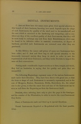 Catalogue of artificial teeth, precious metals, stoppings, dental rubbers, furniture, instruments, laboratory apparatus, tools and sundries, manufactured, imported and sold by Claudius Ash and Sons.