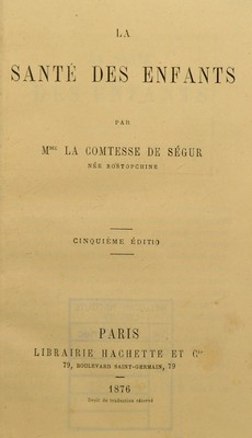 La santé des enfants / par Mme la comtesse de Ségur née Rostopchine.
