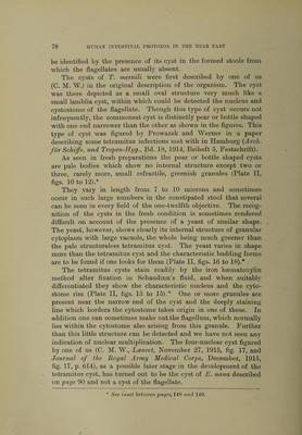 Human intestinal protozoa in the Near East : an inquiry into some problems affecting the spread and incidence of intestinal protozoal infections of British troops and natives in the Near East, with special reference to the carrier question, diagnosis and treatment of amoebic dysentery, and an account of three new human intestinal protozoa / by C.M. Wenyon and F.W. O'Connor.