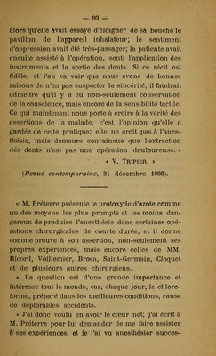 Le protoxyde d'azote son application aux opérations chirurgicales et particulièrement auz opérations et extractions dentaires sans douleur / par A. Préterre.