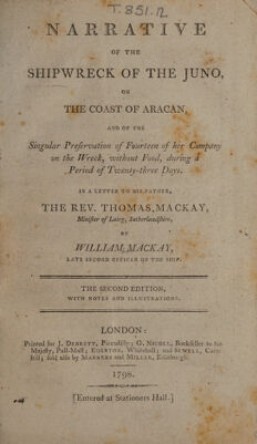 Narrative of the shipwreck of the Juno, on the coast of Aracan, and of the singular preservation of fourteen of her company on the wreck ... / In a letter to his father, the Rev. Thomas Mackay ... By William Mackay.