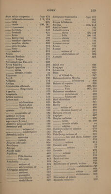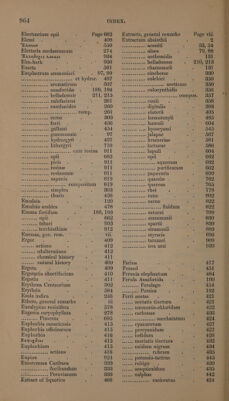 ![Electuarium opii Page 662 Extracts, general remarks Page viii Elemi _ 408 Extractum absinthii 2 “EAevsov IO (MN donameienle 2 aconiti 52, 54 Elettaria cardaniomum ae” Vreeaueornats ox aloes 79, 88 EAA Bogor Aguas or Wen Se Ay ye anthemidis 13] Elm-bark 15) Sal a AR belladonne 210, 2138 Emeta sb ais sad ere chamameli 13] Emplastrum ammoniaci SFOS i teseskeees: cinchonze 330 5 Ae CR DY Arar CSOT. ee te cencen eyes colchici . 350 OR Sees tte ees ‘aromaticum GT w\ “Hotes Peeks 6 eopetaek MCOULCINE 350 seeds testi stect assafoetidee 189,194 ~sy..s......- Cdloeynthidis 356 .- belladonnze 211;-2hs ois « ee ens'eiving ecls'nes oe stone, CODA mmmnnnIEEm eiapuc sry ats un CAletAelens ‘ DOI hence conii ~ ee Das cy daseee vee (CANCHATICES OO ME at a digitalis 398 Bh ... COMP. Be Ee oles elaterii 405 we Lesvedvdieiss COrae DOB 2s incase ceute heematoxyli 485 OPE waives souneet ferri ASG (A. eeecea ces HUTTE 604 ape e R galbani 454 .. hyoscyami 545 ase eoeateensoa OIMIMUSUID 97 .. jalapae 567 pee eseved ators hydrarg yi 497 sc eavoeveees Krameriae 58] Si ee lithargyri FIO — ‘Necc..+0.. ndetwede 586 patin Kaaeiens co CIS weenie! BESS TAM ierea) lupuli 604 Seer enaaetetenet opii C62. ORs epal 662 Bi aw she dts eee picis 911 coord deals ces «ssh AQUOREIEE 662 .. resine 911 Bolin .. purificatum 662 Sen eae eied eae resinosum O11 fos tases ores PApAVeris 690 ... Saponis 819 . quassiz - 762 Messstun reece ieom Puri POL. Tee, quereus 765 wis a Bes simplex DUS Silesesguctes EDEL : 778 aie xateece ss bUUTIS MIE | Sen aten ea rutee 802 Emulsin BO.) vee waaaeee sarze 822 Emulsio arabica 478 bees wees Huidum 822, Enema fcetidum PODS TOD Oe ey saturni 709 Meena opii 662 __....,........ Scammonil 830 Sac e tabaci DA: °. Sateeaehaxccen Oped 839 Ry Sige terebinthine ST2 Sel wetsee stramonn 889 Enemas, gen. rem. =~ . HOP Mee te as ice styracis 896 Ergot Od Namen Saat taraxaci 909 cada: actions BLD.) Ter eceeene SVE Ea : 930 mei eS adulterations 412 Se chemical history . 41] aenes natural history 409 =‘ Farina 417 Ergota 409 Fennel 451 Ergotetia abortifaciens 410 ~~‘ Feronia aiplaatont 484 Ergotin All Ferula Assafcetida 190. Erythrza Centaurium a hee eae ee Ferulago 454 Erythrin Sc Maan TEMES Persica 192 Esula indica 246 ~—s‘ Ferri acetas 42] Ethers, general remarks Lt ie Bee acetatis tinctura 421 Eucalyptus resinifera fe mae has ammonio-chloridum 422 Eugenia caryophyllata Zia 5. ieee carbonas 436 Spee Pimenta OOD. ideas siebsinesotsce SACCIMCAENEE 424 Euphorbia canariensis co te Daa ee cyanuretum 427 Euphorbia officinarum 17) ae percyanidum 427 Euphorbin cH! Sete iodidum 428 EugoeBiov S18 muriatis tinctura 432 Euphorbium a ts ae ome oxidum nigrum 434 Wes ihune dastone actions Ai ier . rubrum 435 Eupion G2e.) DA potassio-tartras 445 Exostemma Caribaea C5 RR eh rubigo 439 So eee floribundum 333 sy... SeSquioxidum : 435 UN corks suse Peruvianum 333 ...... Sulphas ; 442 Extract of liquorice . SOG Acie ticiese cas ORSICCRLIN - 424](https://iiif.wellcomecollection.org/image/b33284295_1020.jp2/full/800%2C/0/default.jpg)