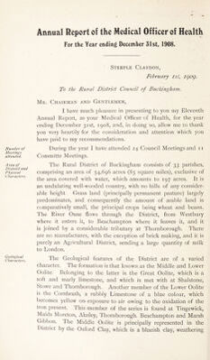 Credit: [Report 1908] / Medical Officer of Health, Buckingham (Union) R.D.C. Source: Wellcome Collection.