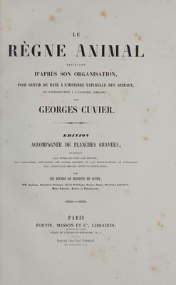 Le règne animal distribué d'après son organisation, pour servir de base à l'histoire naturelle des animaux et d'introduction à l'anatomie comparèe / [Georges Cuvier].