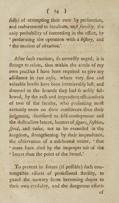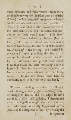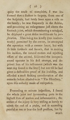 Credit: Practical observations upon thorn wounds, punctured tendons, and ligamentary lameness, in horses, with experimental instructions for their treatment and cure ... To which is added a successful method of treating the canine species in ... the distemper / [William Taplin]. Source: Wellcome Collection.