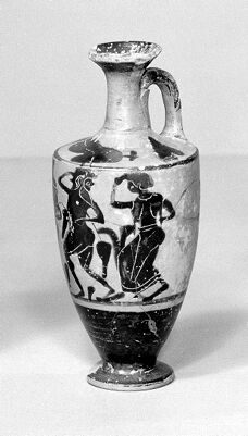 Credit: M0016198: Four tall Greek lekythos decorated in black figure techniqur, 6th century BC. Source: Wellcome Collection.