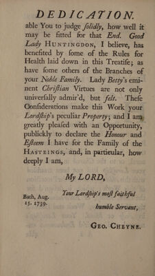 Credit: An essay on regimen. Together with five discourses, medical, moral, and philosophical: serving to illustrate the principles and theory of philosophical medicin [sic], and point out some of its moral consequences / By George Cheyne. Source: Wellcome Collection.