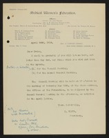 Letters re Secretary of MWF: including Dame Mary Scharlieb, Dame Louisa Aldrich-Blake, Dr Jane Walker, Ethel Williams, Mary Sturge, Louisa Garrett Anderson, Clara Stewart