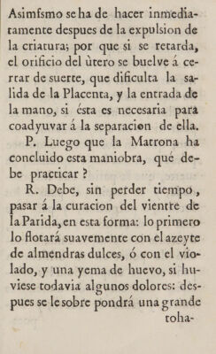 Credit: Cartilla nueva util y necesaria para instruirse las matronas que vulgarmente se llaman comadres, en el oficio de partear / Mandada hacer por el Real Tribunal del Proto-Medicato. Al Doclor [sic] D. Antonio Medina. Source: Wellcome Collection.