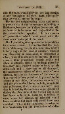 Credit: Observations on the epidemic of 1819 : as it prevailed in a part of the city of Baltimore. Comprising an accurate history of its origin, progress and effects, as far as they can be ascertained; to which are affixed, by way of appendix, some remarks on the medical treatment of the disease, as found successful in the hands of the most distinguished members of the profession. Source: Wellcome Collection.