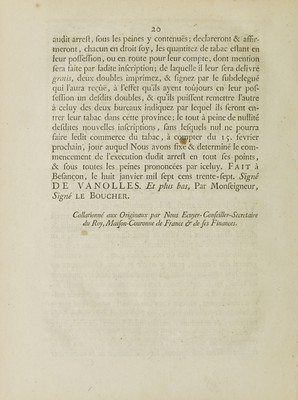 Credit: Arrest ... portant reglement general pour le commerce du tabac au Comté de Bourgogne. Du 11 dec. 1736. Source: Wellcome Collection.