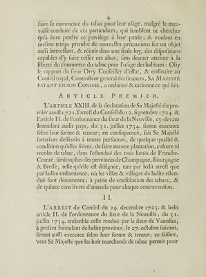 Credit: Arrest ... portant reglement general pour le commerce du tabac au Comté de Bourgogne. Du 11 dec. 1736. Source: Wellcome Collection.