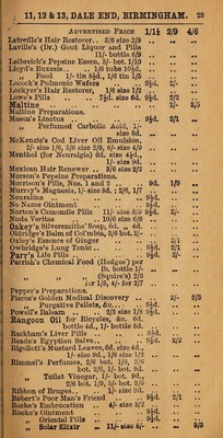 Credit: W.R. Hedges' pocket price list of drugs, chemicals, patent medicines, perfumes, soaps, toilet requisites, domestic and dietetic articles, foreign mineral waters etc / W.R. Hedges. Source: Wellcome Collection.