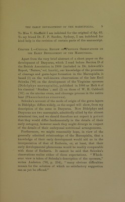 The early development of the marsupialia, with special reference to the native cat (dasyurus viverrinus) / by J.P. Hill.