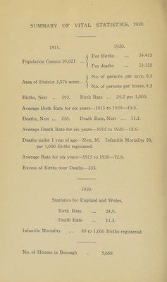 Credit: [Report 1920] / Medical Officer of Health, Canterbury Borough / City & County. Source: Wellcome Collection.
