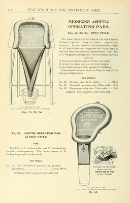 Credit: High-grade hospital furniture and appliances : Catalogue of Department V : comprising operating tables, cabinets, stands, beds, sterilizers, gauze, cotton and surgical supplies : manufactured by Max Wocher & Son. Source: Wellcome Collection.
