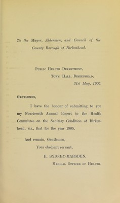 Credit: [Report 1905] / Medical Officer of Health, Birkenhead County Borough. Source: Wellcome Collection.
