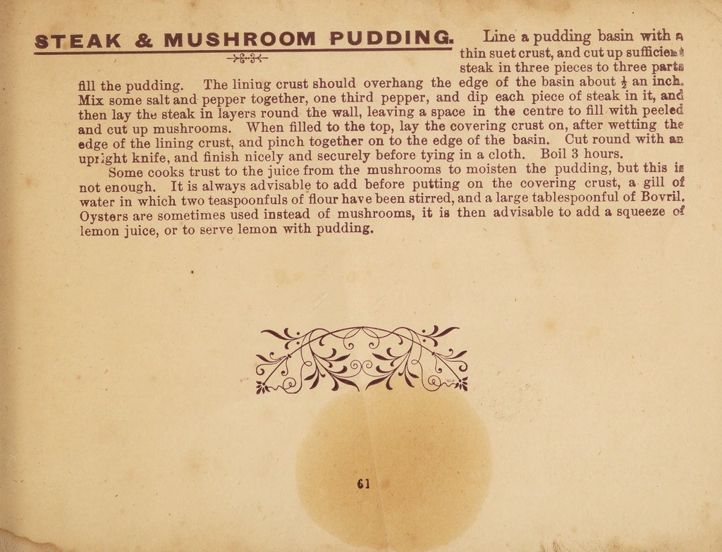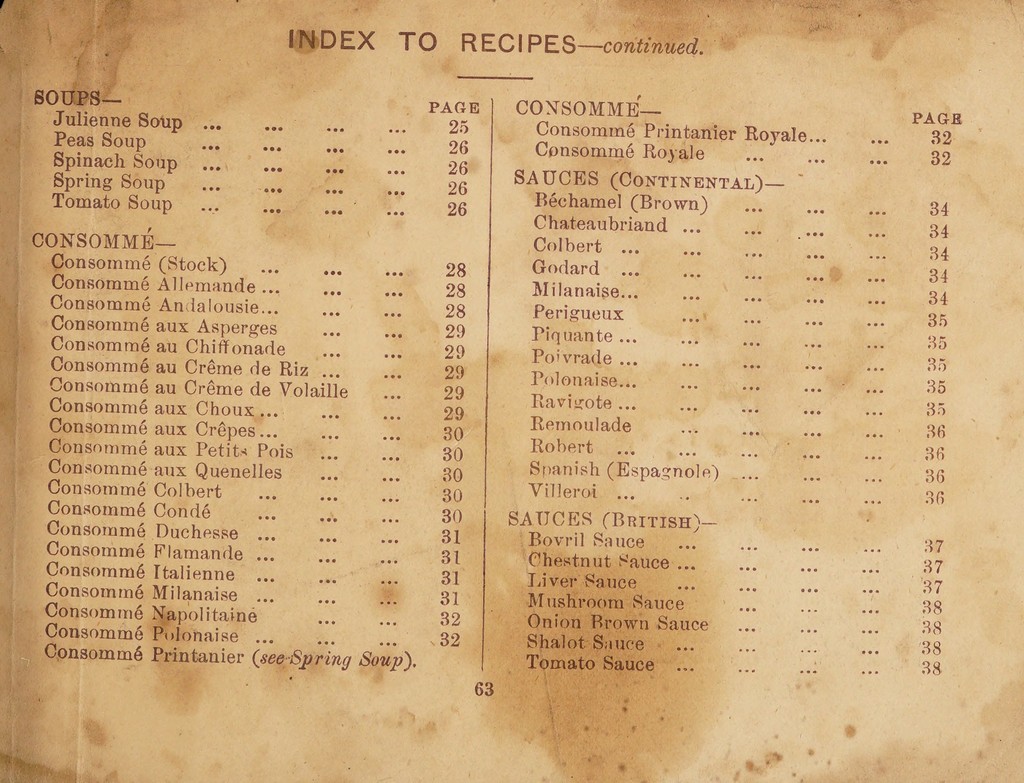 Credit: The practical handbook of standard soups, sauces & gravies : containing also a selection of tried recipes for entrées, aspic, ragoût, curries, patties, pies, puddings, and numerous other popular savouries, croquettes, kromeskies, quenelles, rissoles, etc. special recipes for invalids, dainty appetites, and delicate digestions / by T.F. Garrett. Source: Wellcome Collection.