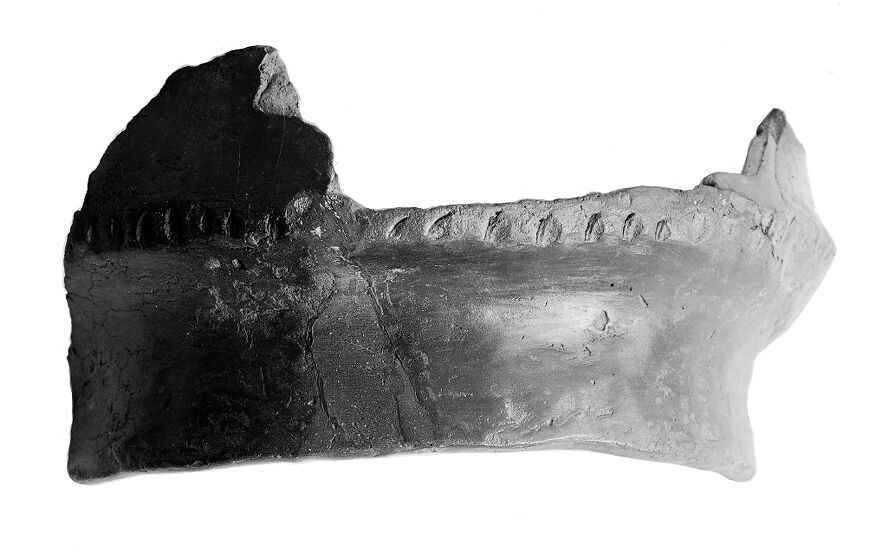 Credit: M0015053: Fragment of Iron Age pottery found at Lent Rise, Burnham, Buckinghamshire. Source: Wellcome Collection.