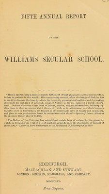 Credit: Fourth annual report of the Williams Secular School. Source: Wellcome Collection.