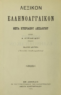 Modern Greek-English dictionary with a Cypriote vocabulary / by A. Kyriakides.