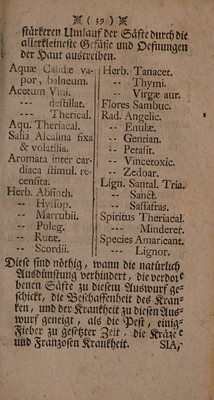Credit: Kurze Beschreibung und Heilungsart der Krankheiten, welche am öftesten in dem Feldlager beobachtet werden, samt beygefügten Recepten, welche vor die Königl. Französtsche Armee vorgeschrieben werden / [Gerard Swieten]. Source: Wellcome Collection.
