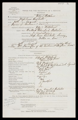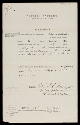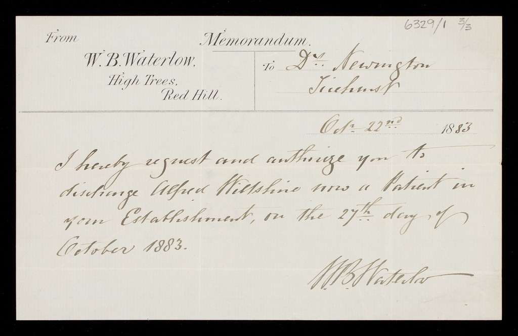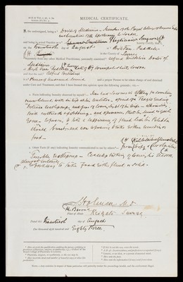 Credit: Patient Certificates and Notices: Admission date 1883. Source: Wellcome Collection.