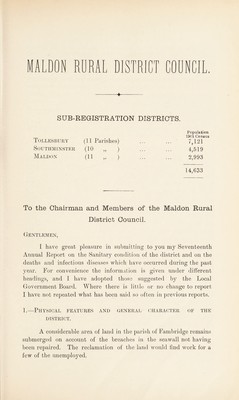 Credit: [Report 1905] / Medical Officer of Health, Maldon R.D.C. Source: Wellcome Collection.