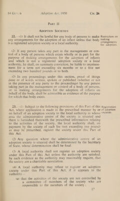 Adoption Act, 1950 : 14 Geo. 6. Ch. 26.