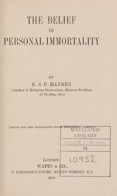 Credit: The belief in personal immortality / by E.S.P. Haynes. Source: Wellcome Collection.
