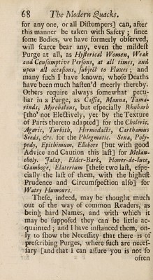 Credit: The modern quack; or, the physical impostor, detected ... With a supplement, displaying the present set of pretenders to clap-curing, giving judgment upon urine, etc ... To which ... a catalogue is annexed of all the members of the Royal College of Physicians, residing in and about the town ... / By a London physician [i.e. D. Turner]. Source: Wellcome Collection.