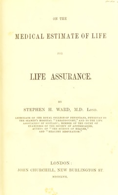 Credit: On the medical estimate of life for life assurance / by Stephen H. Ward. Source: Wellcome Collection.