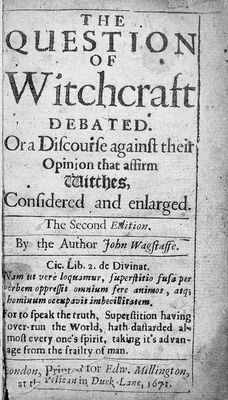 Credit: M0016706: Wagstaffe: <i>The question of witchcraft</i>, 1671: title page. Source: Wellcome Collection.